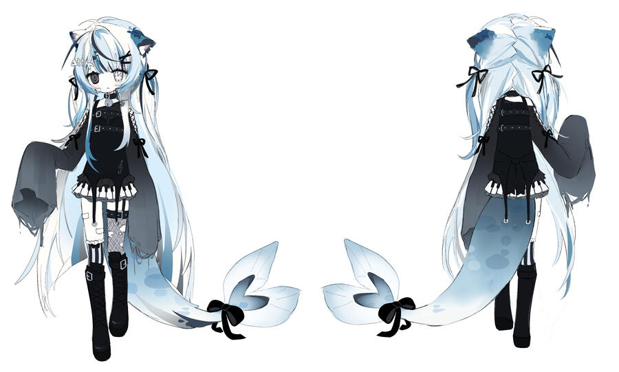 -I always send a sketch before i start the final design. Changes are allowed during the initial sketch process and MINOR changes are allowed after design is finished-no reselling for higher price unless more art, trade,gift,swap, OK, changing design, etc-if design is traded the design is worthed at its original worth(including art if it has any)-you are allowed to make changes to the design!-if you want to use the design commercially/as a vtuber, a commercial fee will be added!